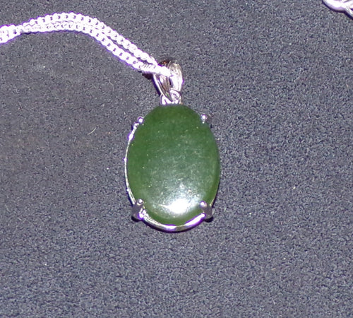 Natural Canadian Nephrite Jade Necklace with Sterling Silver Setting and Chain
